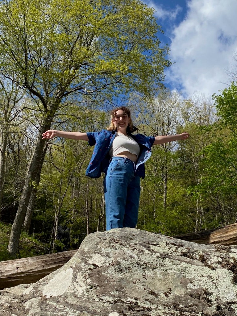 Chloe Wiederhorn (she/her) is a seventeen-year-old high school girl from Montclair, New Jersey. She first became deeply involved with art in middle school, finding the process of artmaking extremely satisfying and fulfilling. She has since grown to view art as a broad outlet for her boundless creativity. At times, she creates works with intricate messages. At other times, she simply creates art for the pure joy she earns from the creative and physical processes of making art, hence her piece “The first self portrait I am proud of.”